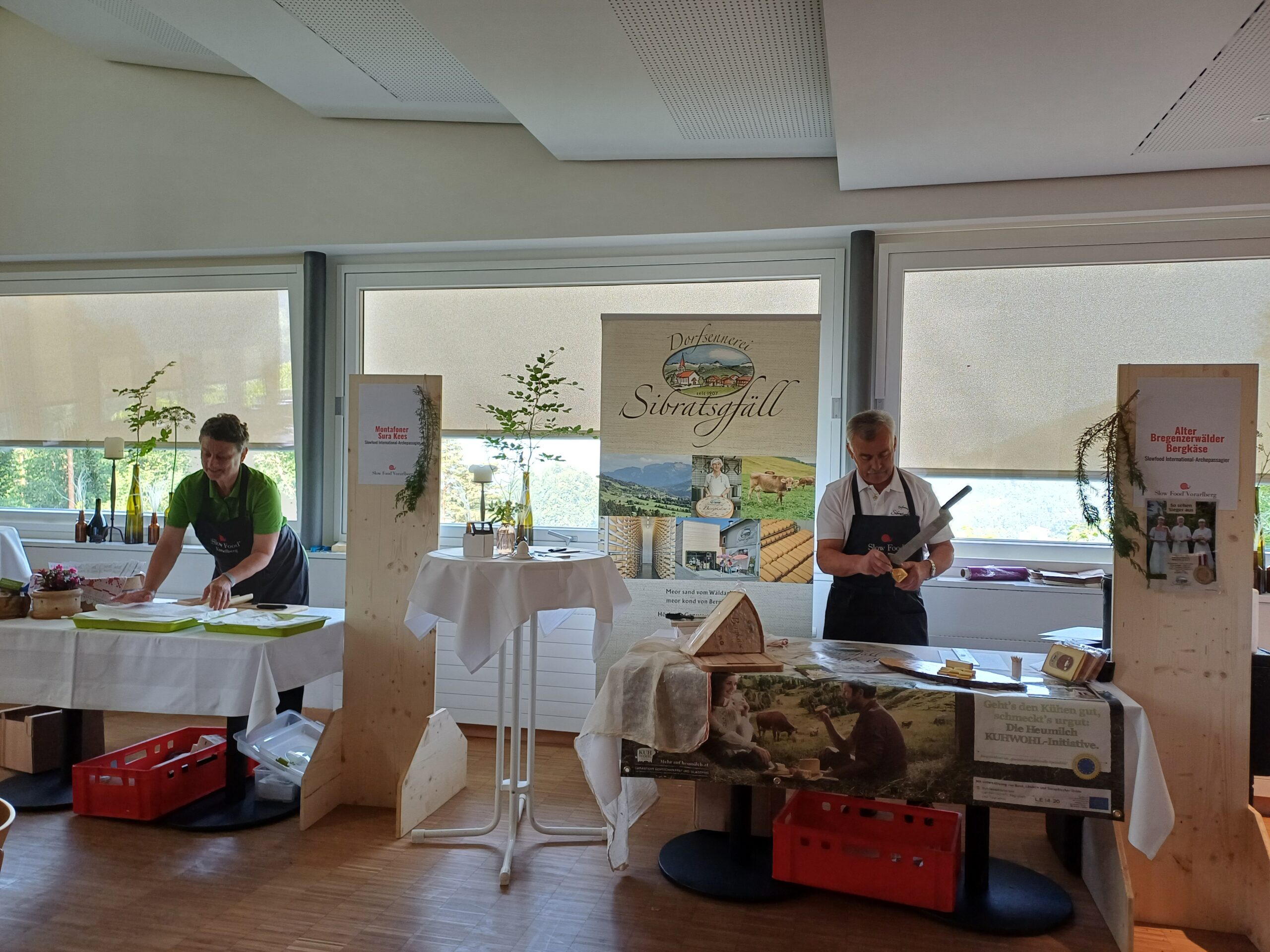 Zu den Produzent:innen, die aus Überzeugung die Vorarlberger Arche-Produkte in bester Qualität herstellen und die Lebensmittel beim Arche-Tag präsentierten, gehören Birgit Hefel (Subirer, Hefel Edelbrand, Wolfurt), Renate Sandrell (Sura Kees, Hofsennerei Sandrell, Tschagguns), Doris und Harald Bitschnau (Steinschaf, Verner’s Bartholomäberg) und Barbara Hartmann (Vorarlberger Riebelmais, Gärtnerei Hartmann, Ludesch). Bregenzerwälder Bergkäse brachte Martin Bereuter, Bürgermeister und Obmann der Sennerei Sibratsgfäll, mit. „Bei unserem Arche-Tag konnten wir erstmals Produzent:innen aller fünf Arche-Produkte gemeinsam vorstellen und den Slow-Food-Freunden bei einem Abendessen zeigen, wie gut und einzigartig sie schmecken“, freut sich Vito Mussner, Präsident von Slow Food Vorarlberg.