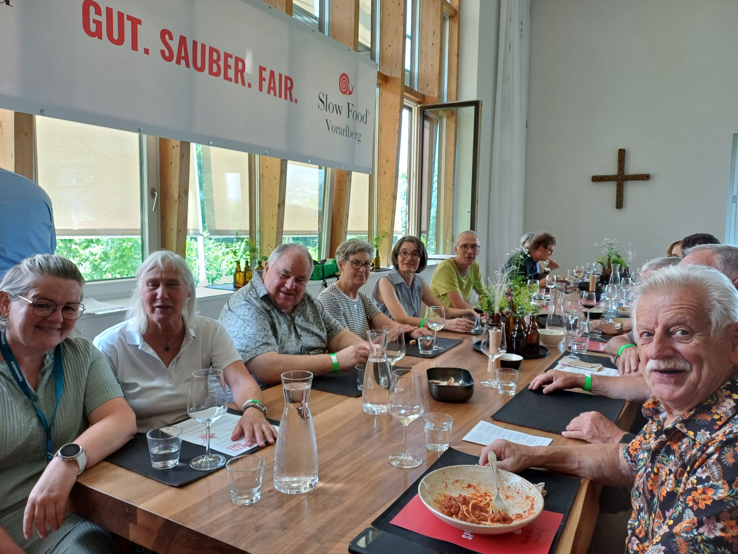 Mit dabei waren Margit und Heinz Lingenhöhle, Cornelia und Franz Satler, Michael Higi und Silvia Nigg von slow food Ostschweiz, Andrea Ströhle, die bei einem kleinen Wettbewerb den ersten Preis gewann, Alexandra Lassnig, Helene und Manfred Schobel, Ursula und Walter Fink , Elisabeth und Mario Merletti, Brunhilde und Peter Mayerhofer, Hedi und Hans Tschernig, Gerhard Kräutler, Sigi Baier und Annelies Dobler.